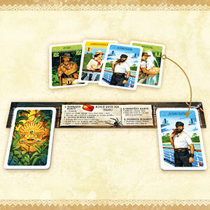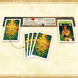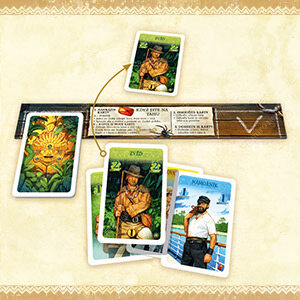- Karty s vybavením a pomocníky jsou umístěny vedle herního plánu a tvoří trh.