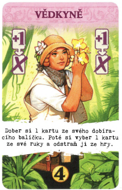 - Vědkyně: Okamžitě si můžete vzít další kartu a případně odstranit kartu z ruky.