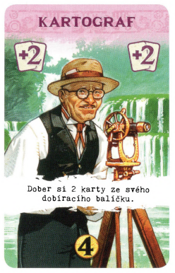 - Kartograf: Můžete si vybrat 2 karty z balíčku a hrát je tento tah.