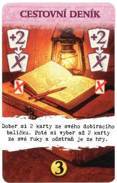 - Cestovní deník: Můžete si vzít 2 karty a poté odstranit až 2 karty z ruky.