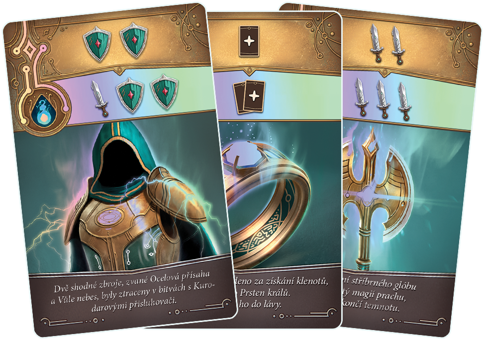 Legendy z podhradí (v orig. Dungeon Legends) je výjimečnou a zbrusu luxusní karetní hrou, která nabízí napínavé dobrodružství a komplexní strategické výzvy. Hra kombinuje prvky kooperace, taktiky a objevování, což z ní činí skvělou volbu pro fanoušky fantasy her. Jedním z hlavních lákadel této hry je její vizuální zpracování a kvalita komponent. Detailně malované desky hrdinů, luxusně šitý neoprenový herní plán a nádherně lesknoucí karty s úchvatnou grafikou dodávají hře estetickou hodnotu k působivému celkovému zážitku.